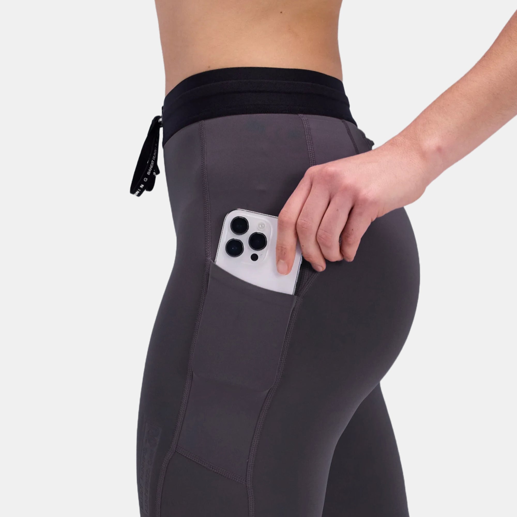 Constructed from Brushed Stamina™, a cozy evolution of our award winning stretch interlock, these tights strike the perfect balance between performance and warmth for when temperatures drop. Including Bandit's signature custom developed elastic with branded drawstring and equipped with 5 pockets: 2 pockets, one on each thigh designed for iPhone, with waterproof liner; 2 gel pockets, and 1 iPhone sized zipper pocket at center back. Elevated embossed branding at front thigh and center back yoke.