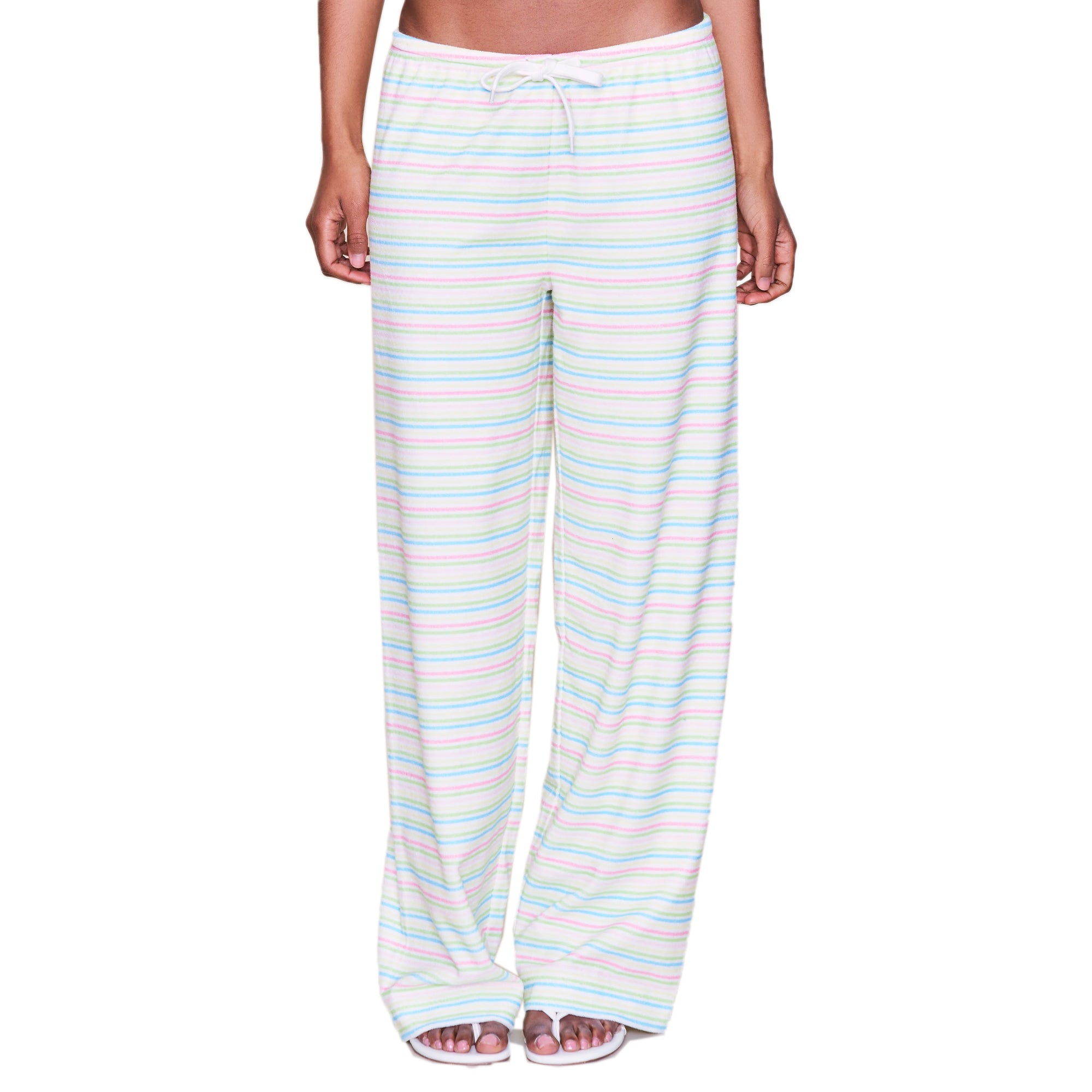 • An off-duty essential in plush terry. The Dani Terry Pant features a low-rise fit with a relaxed, straight leg and adjustable drawstring waistband. Soft, slouchy, and endlessly wearable—pair it with the matching Dani Tank or mix it into your everyday lounge rotation.