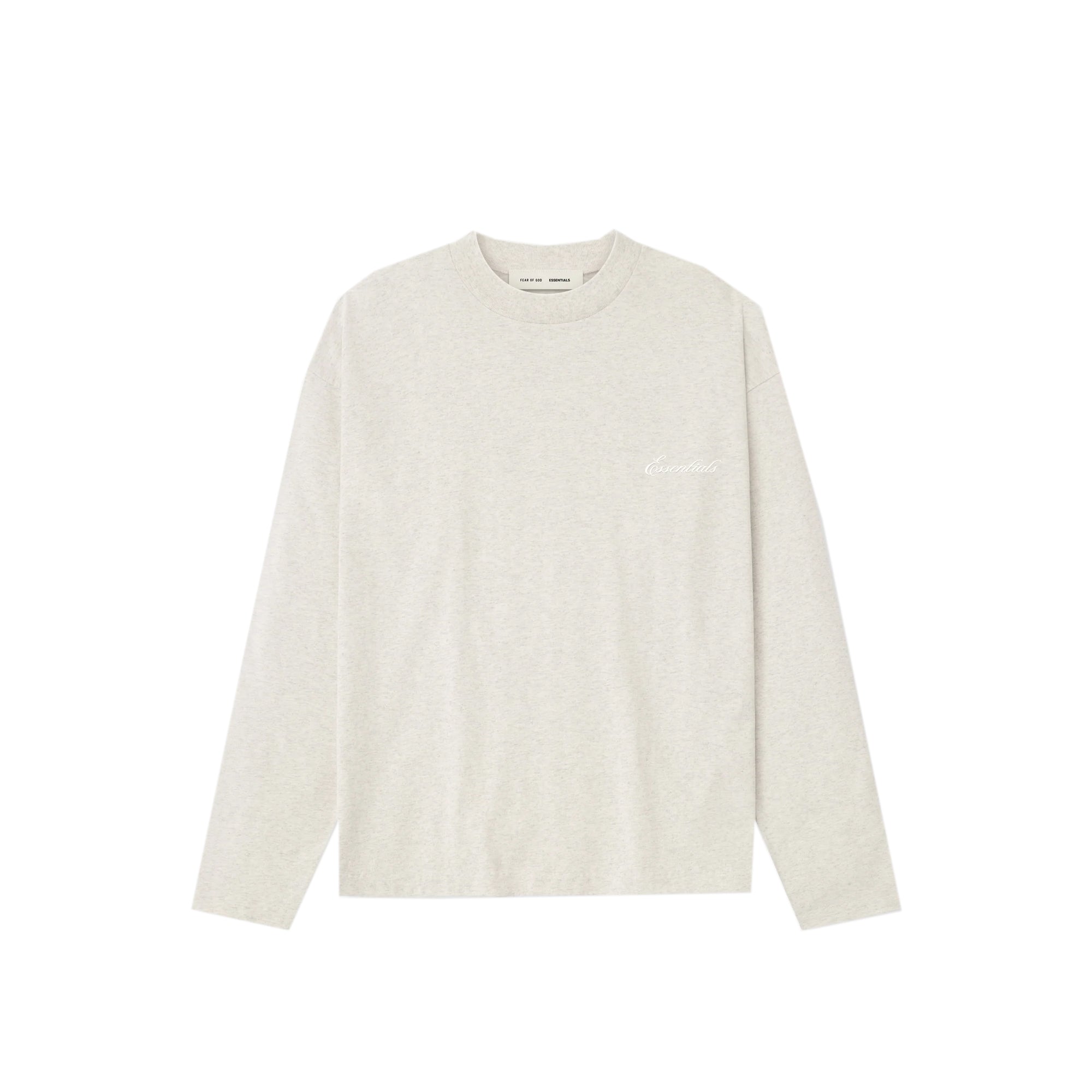 The Classic Long Sleeve Tee is made from medium-weight 100% cotton jersey. The rib-knit crewneck tee features a classic fit with signature Fear of God relaxed proportions for everyday wear. Branding includes an embroidered Essentials script logo on front and the Fear of God Essentials label at the back collar.
