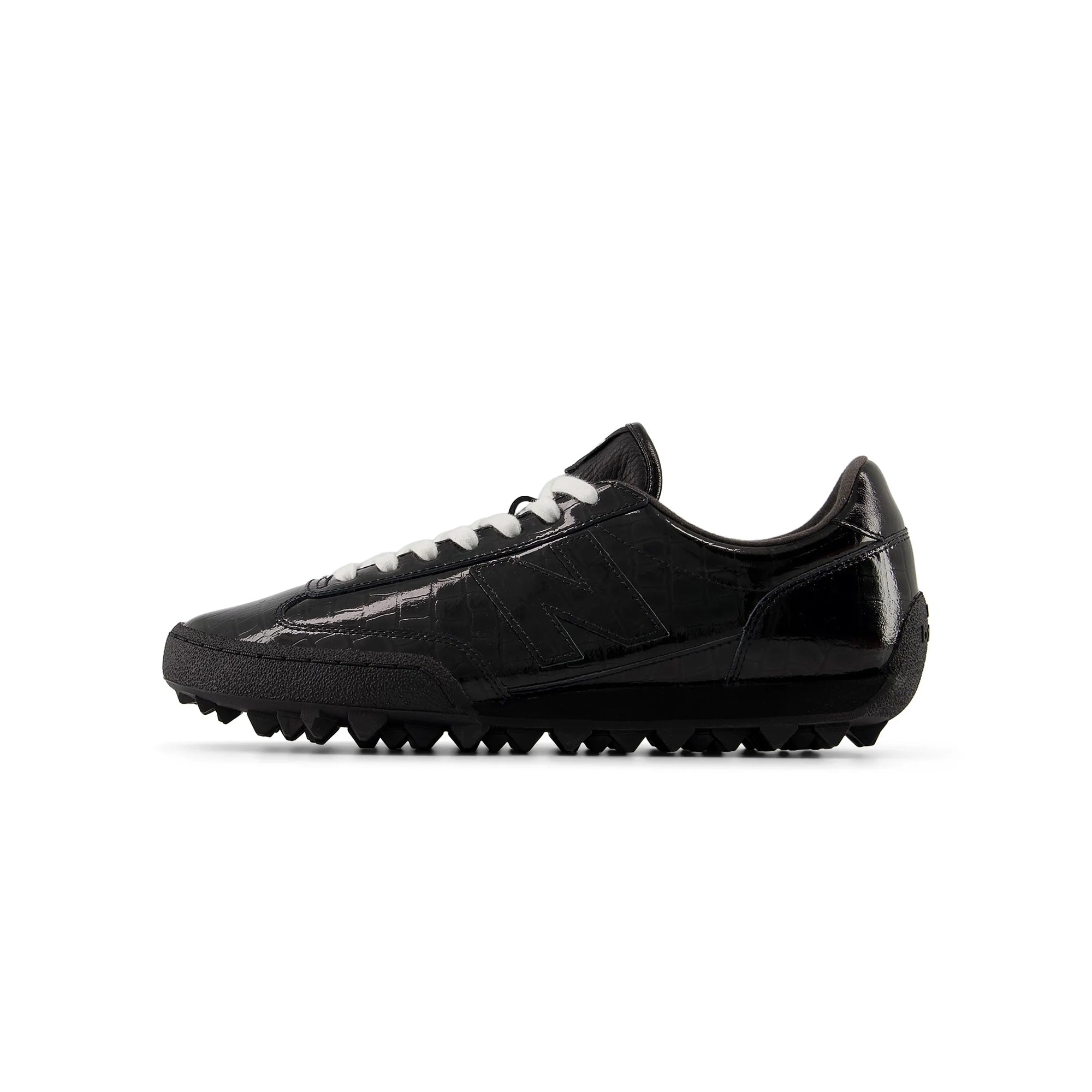 The Gator Run returns from the archives in rare form. Once an athletic turf shoe, it's been updated as a bold lifestyle model. The low profile is a canvas for textures: the patent leather upper features a debossed crocodile print. But the real star of this sneaker is the rubber outsole, which is lined with unique rubber teeth that harken back to the Gator Run's performance past. The resulting silhouette is an exciting new take on sport-inspired style.