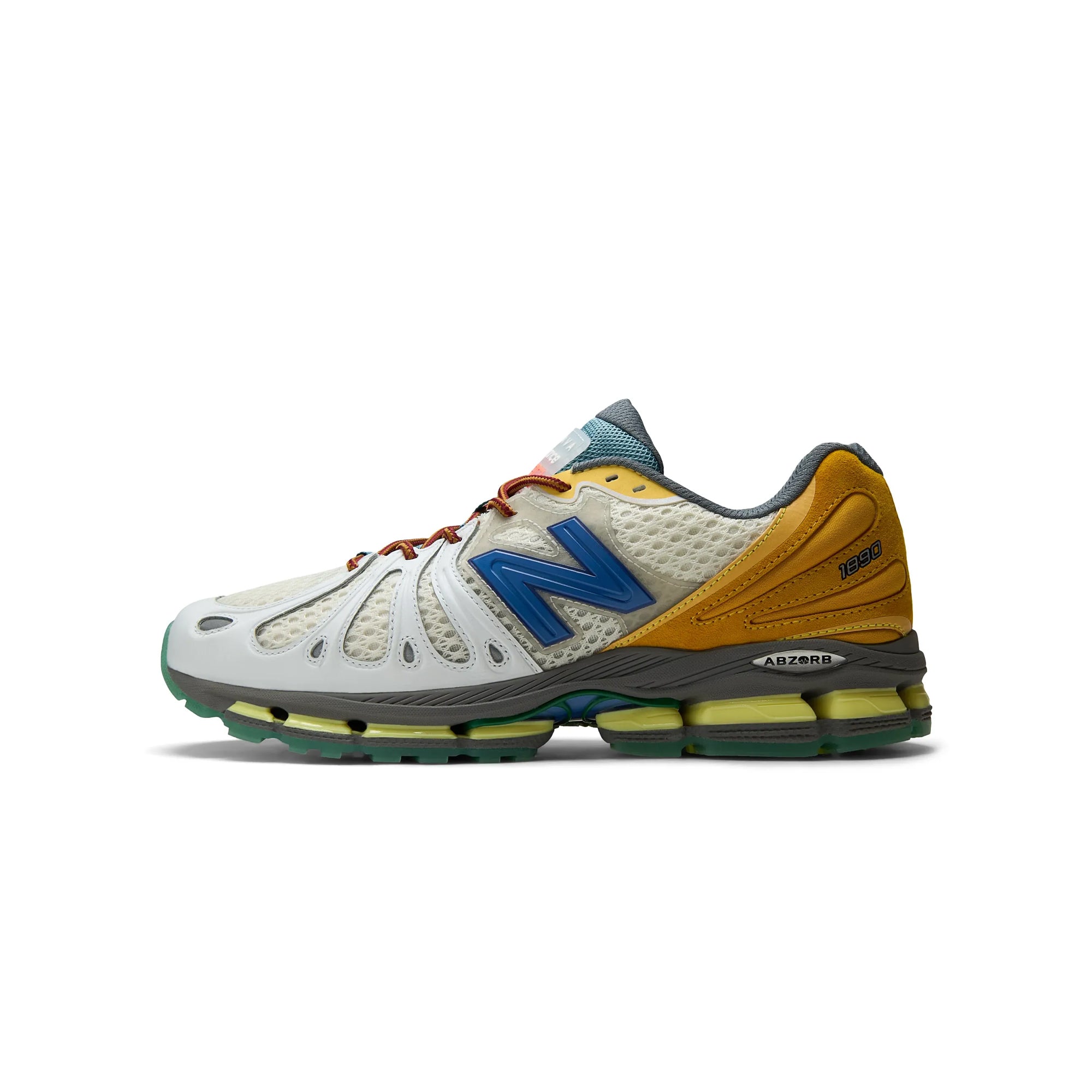 Action Bronson's latest footwear endeavor is a collaborative take on a newly introduced style, the ABZORB 1890. Though this futuristic design derived from archival models, it has an innovative design language all its own. A wave cutout pattern over an exposed mesh upper, inspired by the 890v3, tops the 2002's ABZORB-cushioned sole unit. Bronson's take on the shoe features co-branding and a unique color blocked palette.