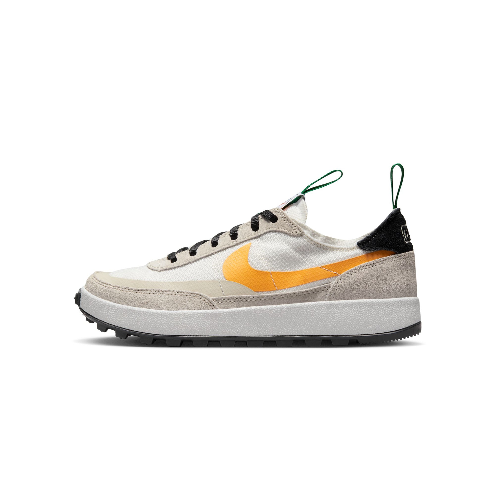 The NikeCraft GPS Bricolage is true to its name. Its elements derive from unexpected use. The sole? It looks like a waffle because it took a waffle iron to invent the running shoe. The Pine Green pullstraps? They’re cut down from high-performance automotive seat belts. The upper? It’s knit—with knots—not woven. It honors the knot-tying methods used by explorers to discover the world.