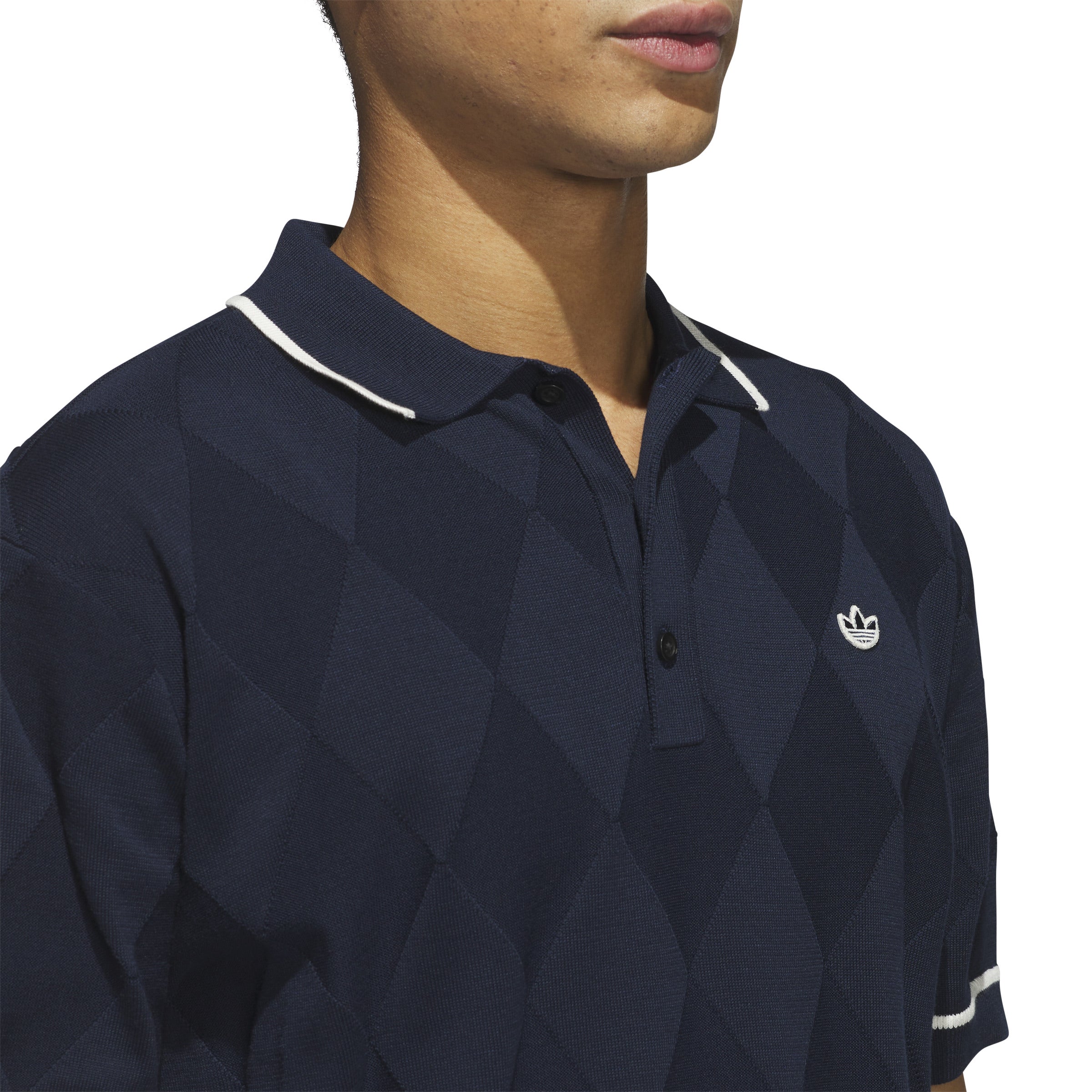 Classic style for the win. This adidas golf polo brings a legacy look to your round with its argyle knit construction. Ribbed details and the iconic Trefoil logo lend Originals credibility to a top that wears well on the course and at the clubhouse.