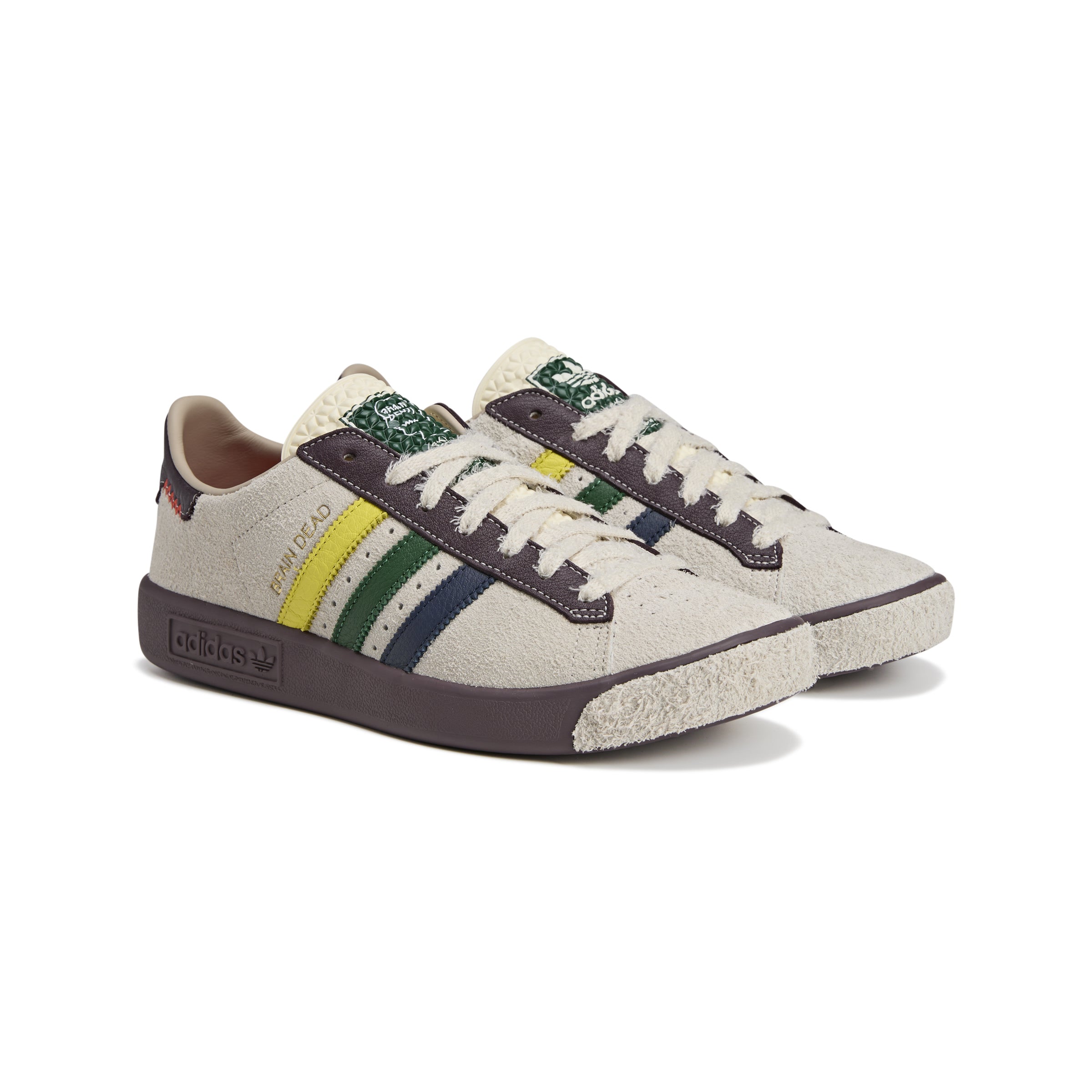 The adidas Forest Hills trainer was first released in 1976. In collaboration with Brain Dead, Adidas brings back the silhouette that first debuted at one of the biggest tennis tournaments in the Queens, New York neighborhood the shoes get their name from. Still a low-profile silhouette, they have a hairy suede upper that features 3-Stripes, visible stitching at the heel tab and an Ecotex tongue.