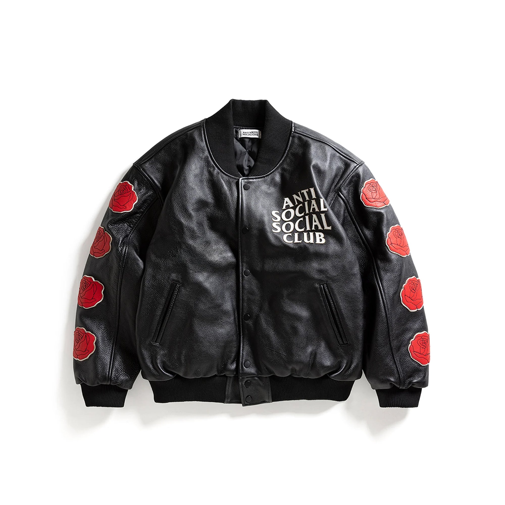 Anti Social Social Club↗ Anti Social Social Club Mens Petal To The Metal Leather Varsity Jacket