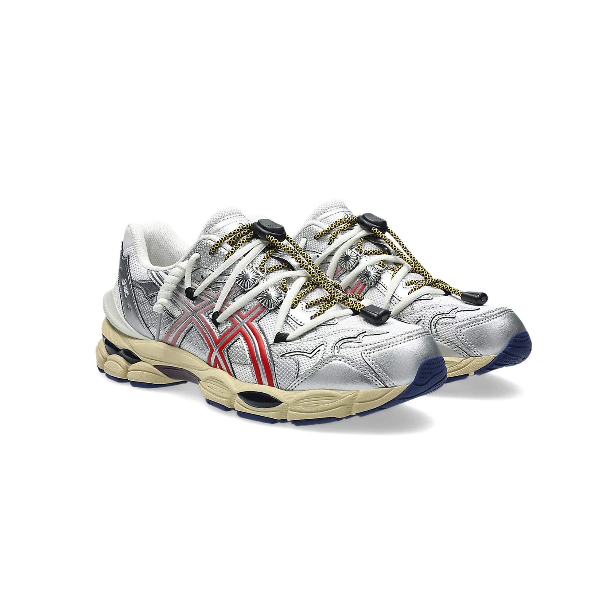 The GEL-CUMULUS™ 16 TG sneaker reimagines heritage ASICS running shoe influences with contemporary design influences familiar to their in-house collections. Its upper construction is made with a combination of mesh and exaggerated synthetic leather overlays. These materials are met with two sets of laces—one of which features an elongated speed lacing system. There's also a pronounced external heel counter and silver concho details on the eyelet stay. The sneaker's soft cushioning properties are left intact. It features dual GEL™ technology inserts, FLUIDRIDE™ technology to help provide a comfortable feel underfoot.