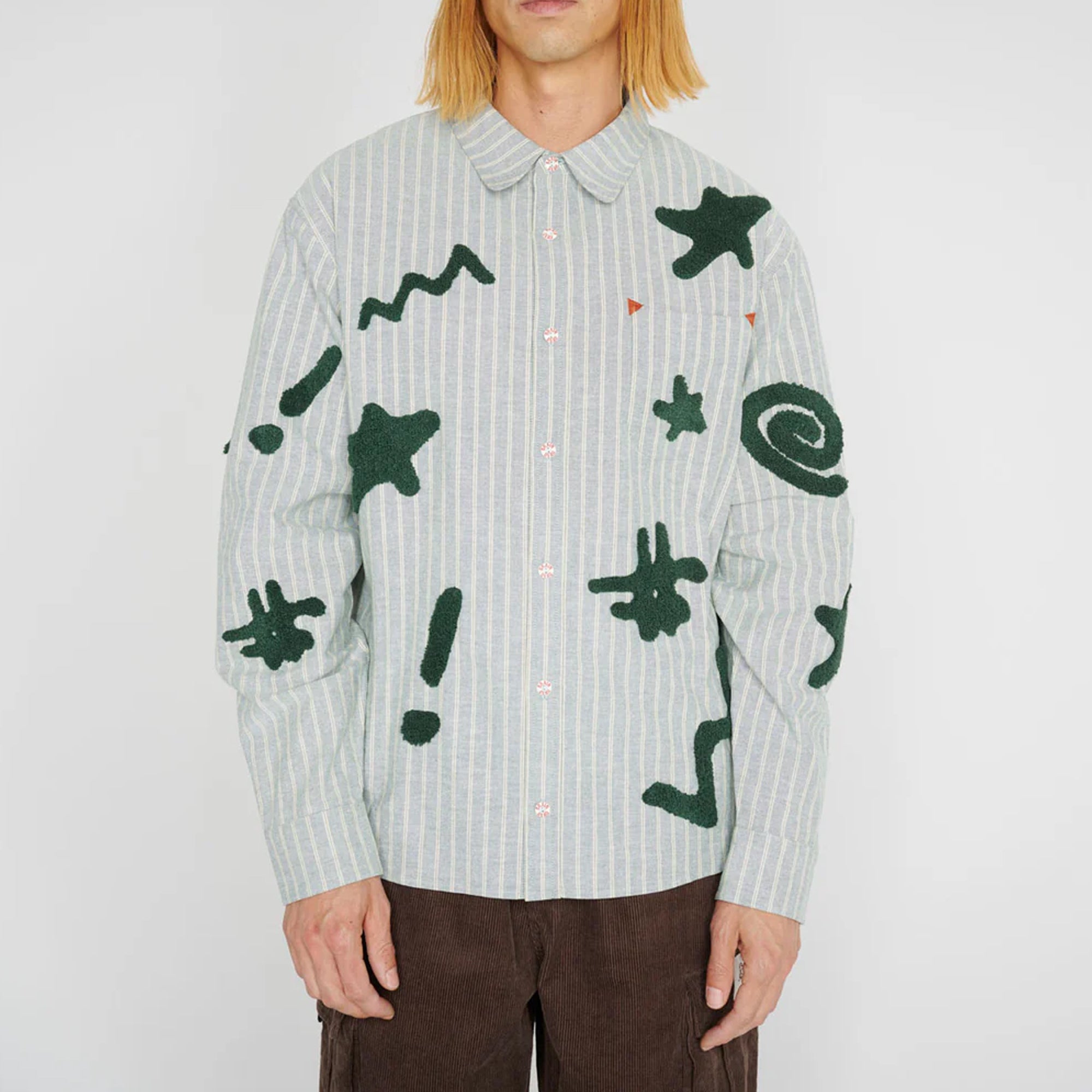 Brain Dead Brain Dead Mens Striped Chenille Symbol Shirt