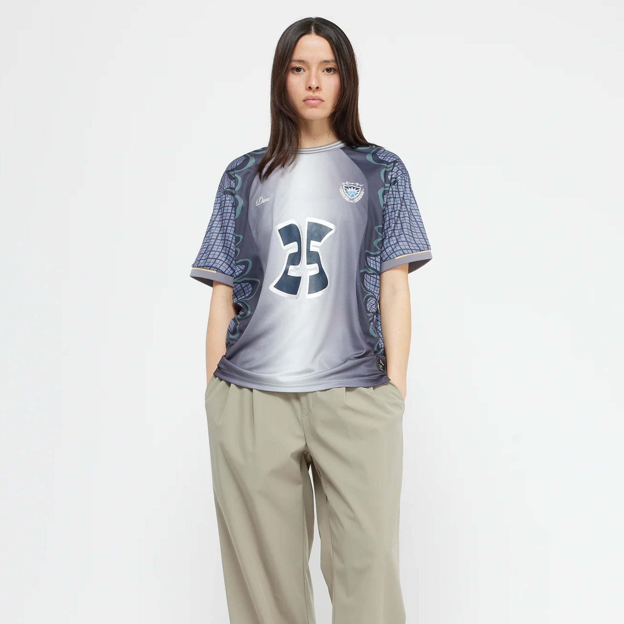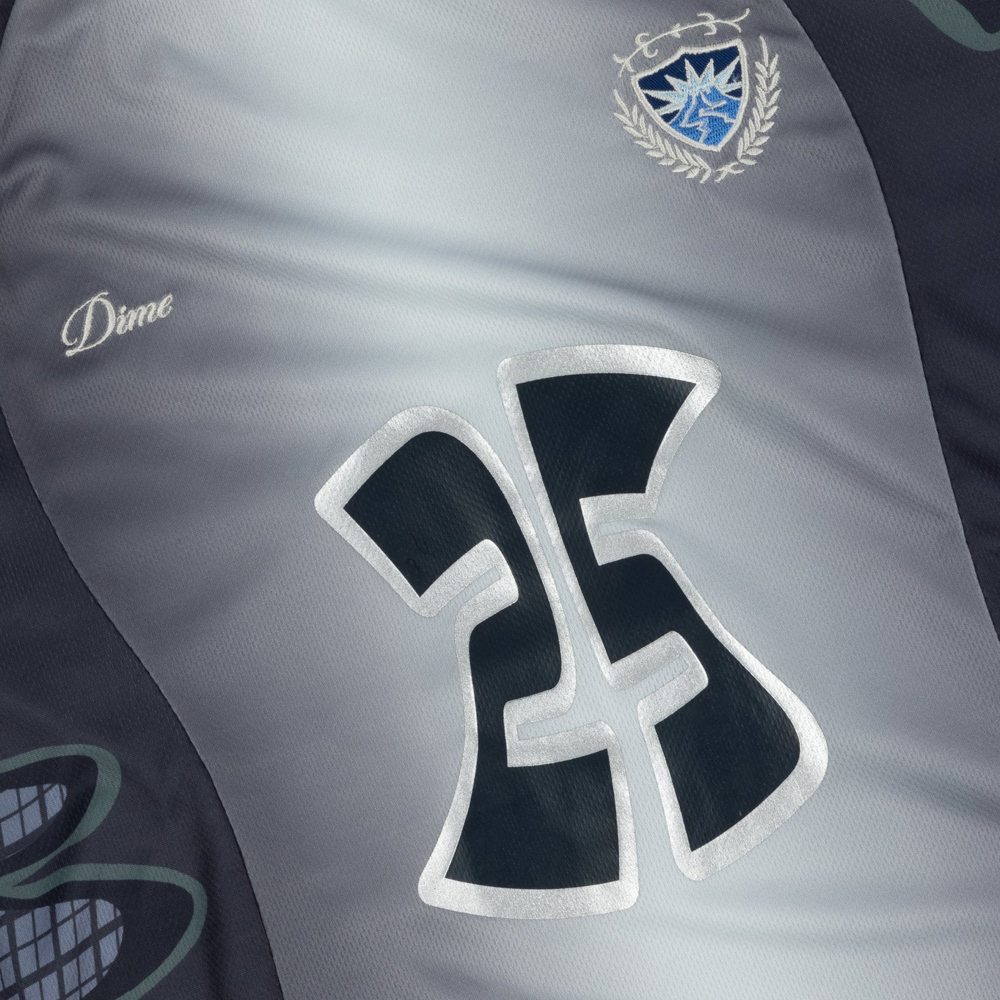 • “25” metallic print at center front