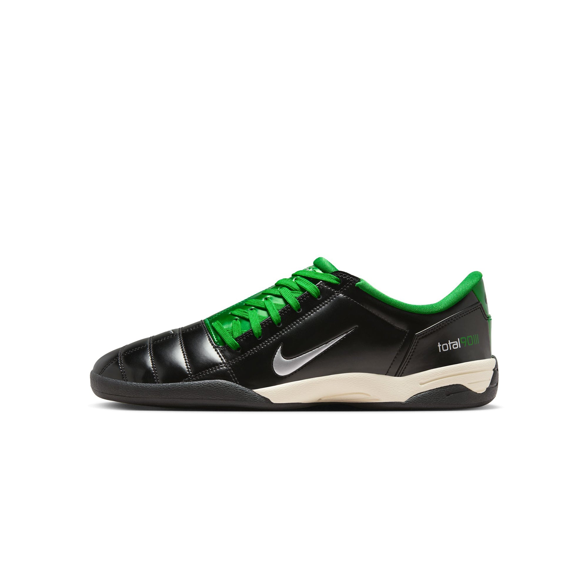 The Total 90 is back. This authentic soccer style delivers Y2K nostalgia with its original quilted upper and asymmetrical lacing. We swapped the cleats for a flat rubber sole ready for the streets, and brought back a heritage color palette ready for however you want to wear it.