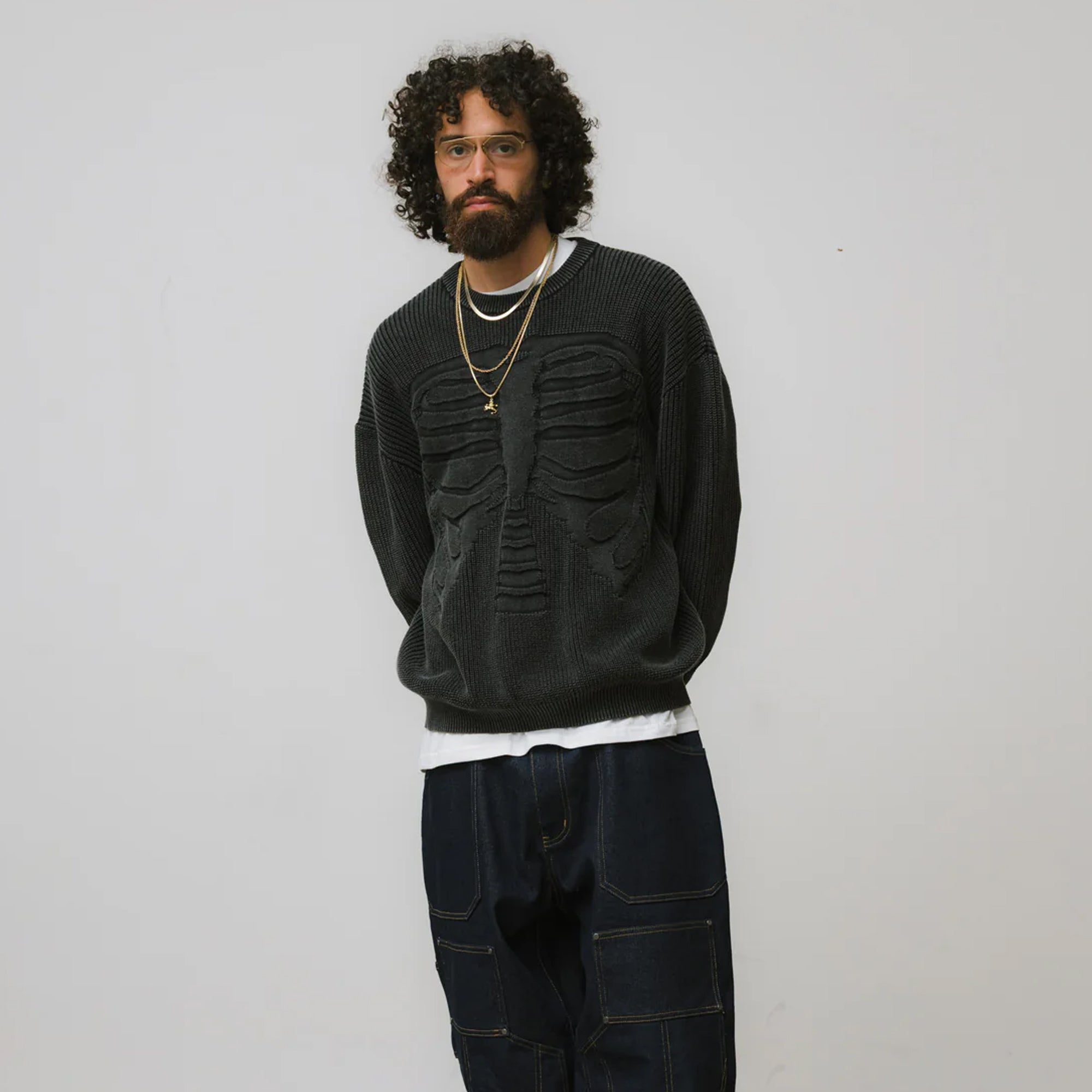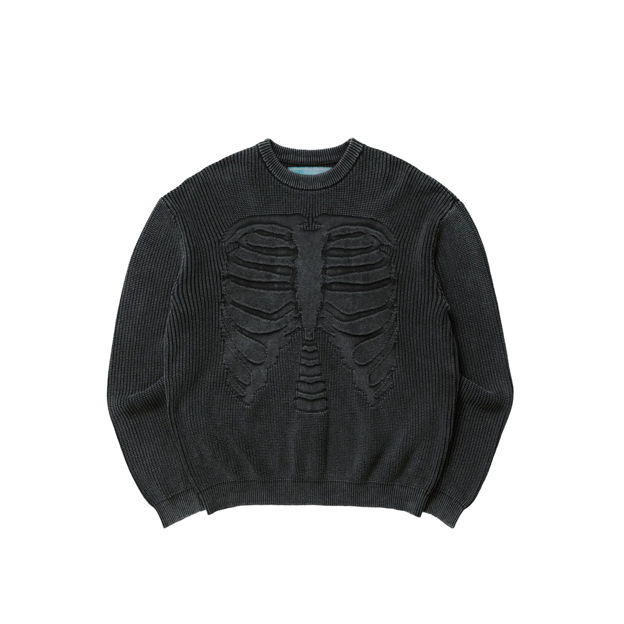 Brigade Brigade Mens Acid Wash Bones 3D Knit Sweatshirt