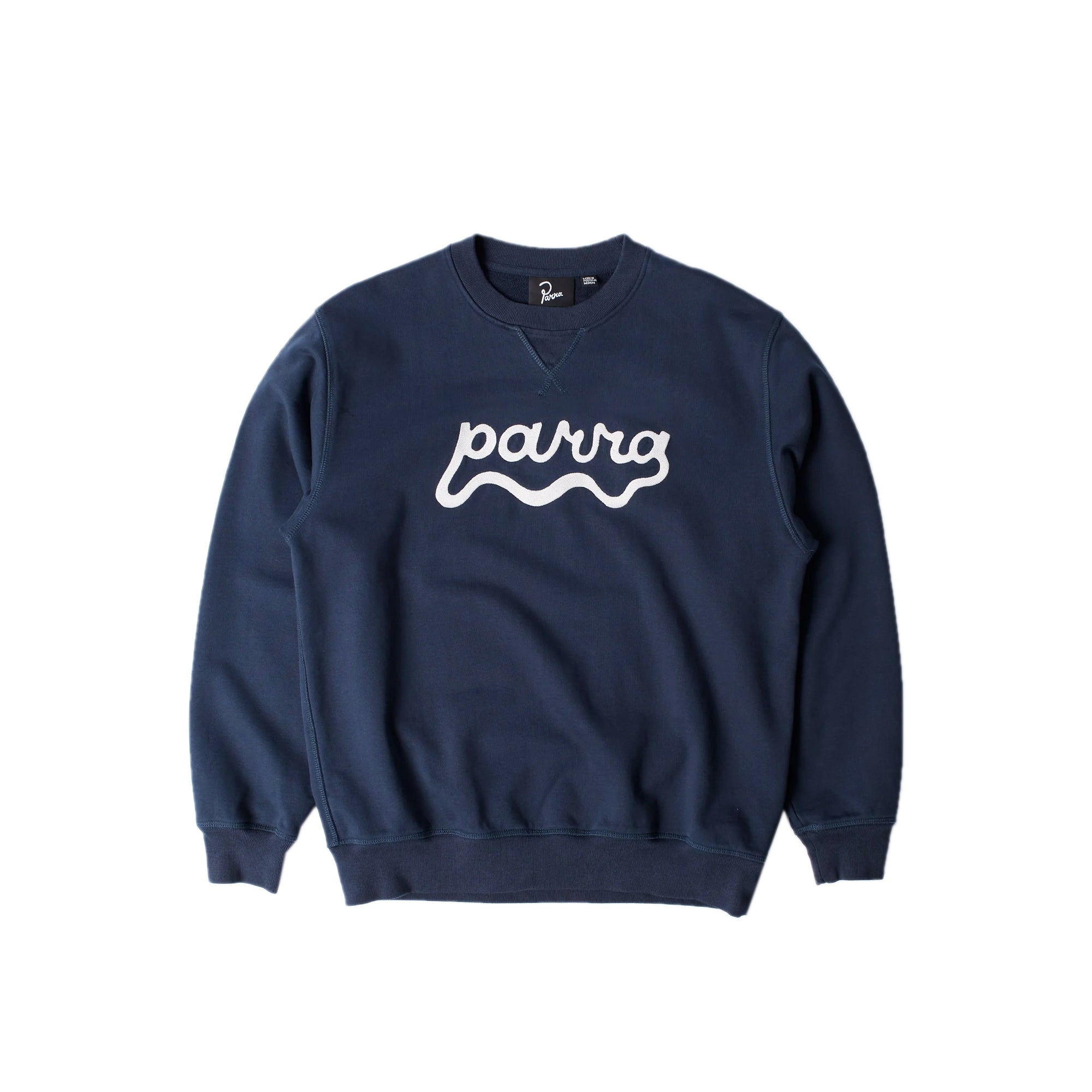 Water wave Parra logo embroidery at the chest of this heavy weight crew neck sweatshirt.