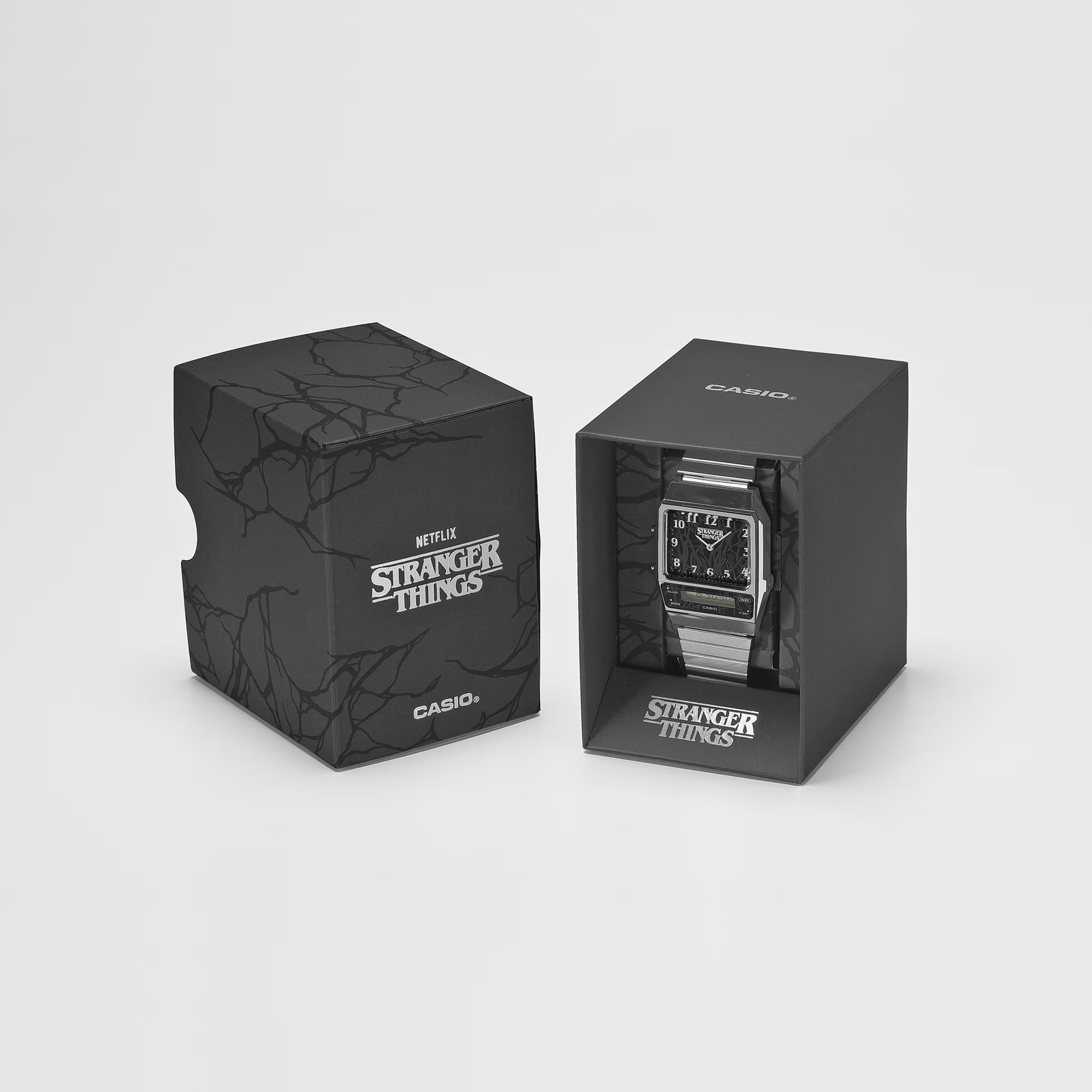 • The watch comes in special packaging that highlights both the Demogorgon and the signature vines, capturing the threatening forces the characters face throughout the series.