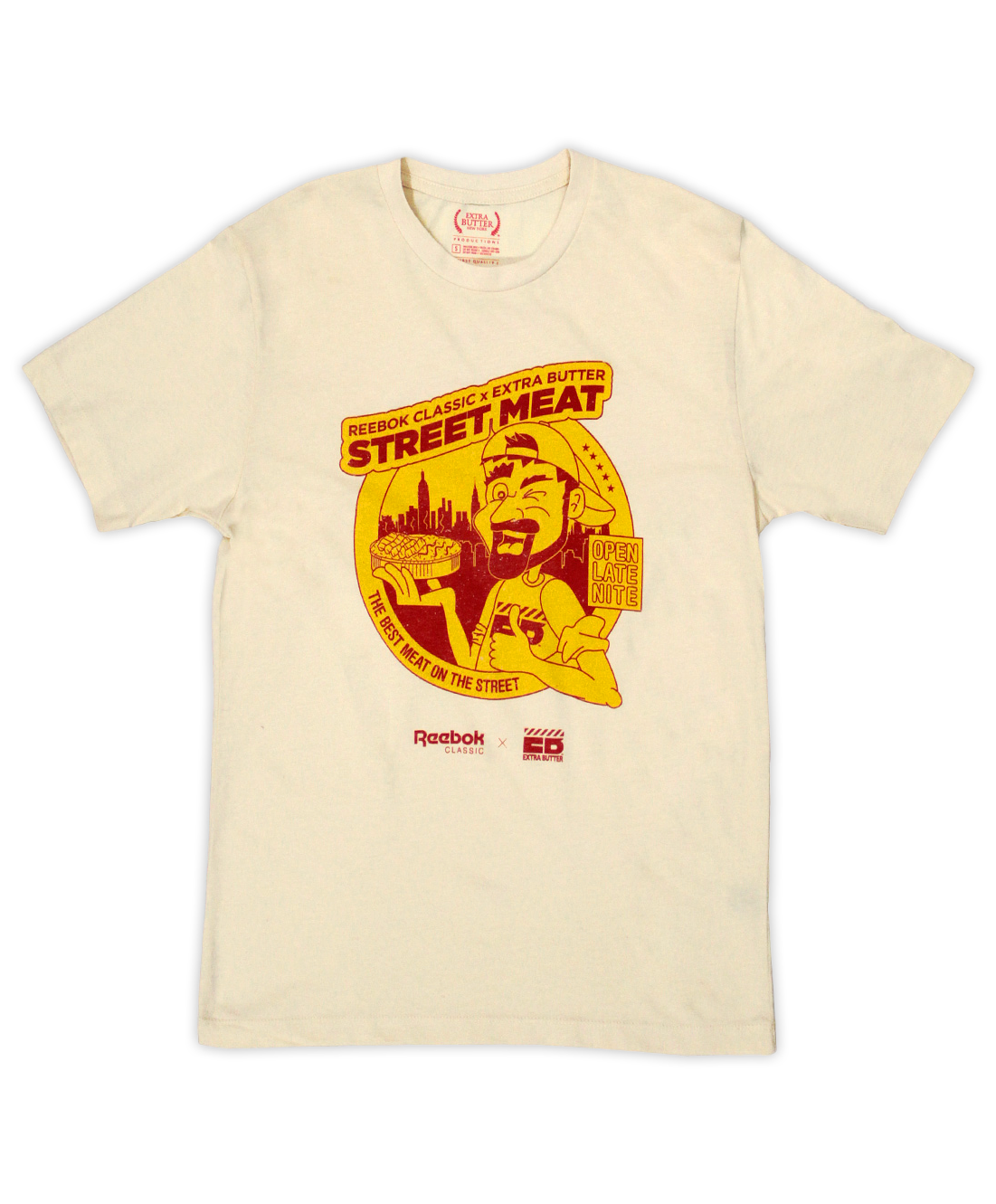 Extra Butter partners with Reebok for the 25th Anniversary of the Ventilator.  1990 marks the birth year of the Reebok Ventilator, as well as the start and rise of “Street Meat” food vending, a delicacy which remains a New York City staple and Extra Butter favorite through the years.