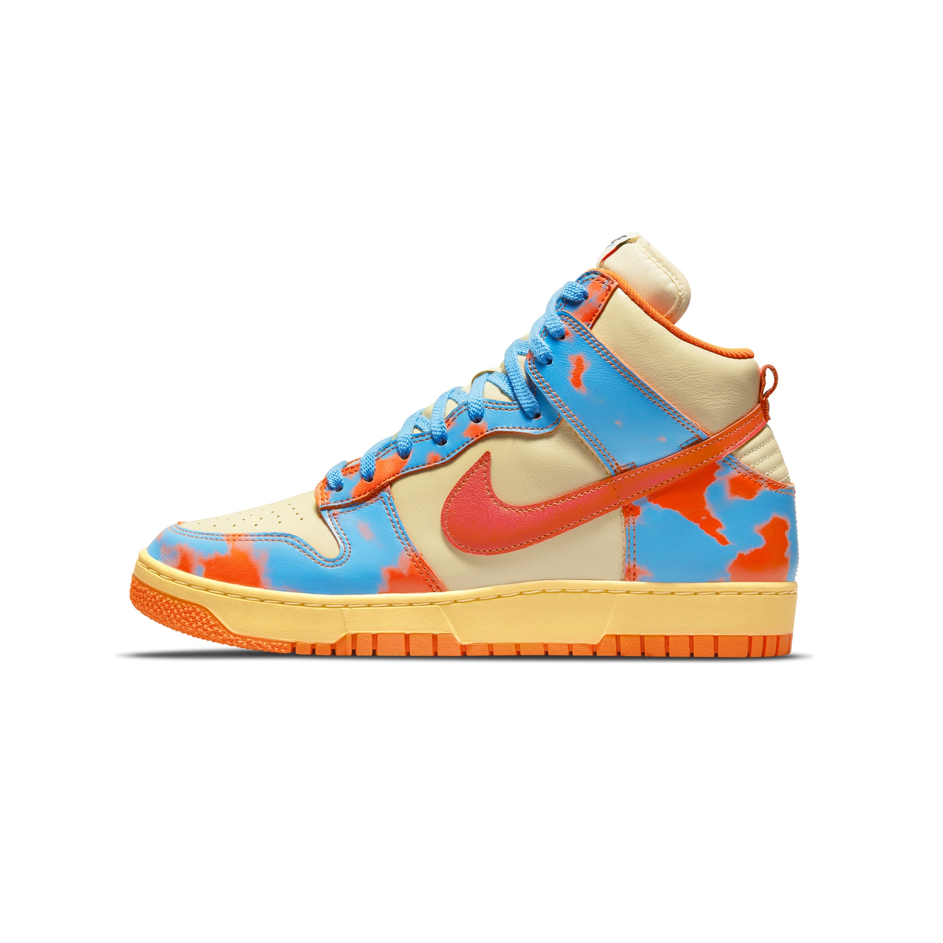 Celebrate 1985 with an updated version of the Dunk High, recrafted to reflect the first 1985 Dunk—and amplified by a cloud-like graphic that adds an expressive touch reminiscent of '80s-style tie-dye. Its design through both the upper and tooling have been modified to match the shape, look and feel of the original to create streamlined appeal while still bringing you the familiar comfort of the classic.